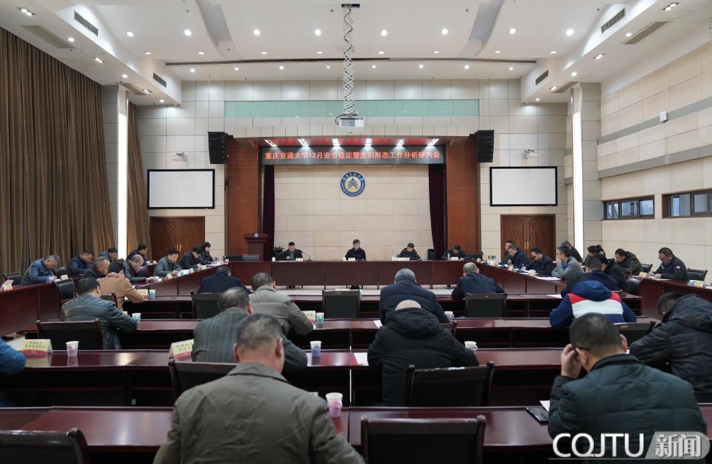 校党委书记李天安在讲话中指出,2020年是极不平凡的一年,面对重重考验,全校师生交出了满意的答卷。李天安强调,岁末年初,全校安全稳定工作要进一步抓紧抓实,绝不能有半点松懈。一是要提高政治站位,充分认识安全稳定和意识形态工作面临的新形势新任务。要切实负起政治责任和领导责任,始终坚持正确政治方向、舆论导向、价值取向,不断增强“四个意识”、坚定“四个自信”、做到“两个维护”,切实做好意识形态领域各项工作。二是要紧盯重点工作,防范化解安全稳定和意识形态领域存在的风险隐患。切实做好防范疫情防控突发性风险,加强门岗管理,严格落实上级疫情防控工作要求及冬季流感等疾病的宣传防治工作;化解舆情风险,牢牢掌握意识形态工作领导权主动权管理权;规范活动管理,强化校园设施设备及校园场地安全隐患整改,抓好今冬明春消防安全,食品卫生安全,特种设备、危化物品管理等工作。三是要层层压实责任,确保安全稳定和意识形态各项工作落实落地。各单位要总结工作经验,部署下一阶段任务,进一步动员全校上下提高站位、认清形势,抓住重点、化解风险,强化责任、狠抓落实,为接下来学校疫情防控、重要节假日期间的师生安全和校园稳定工作打好基础,为学校事业发展提供强有力的安全保障。