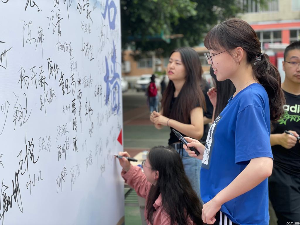 校党委副书记郑旭煦宣布“全民反诈 你我同行”反诈签名活动开始。此次活动得到了广大师生的响应,在校党委副书记郑旭煦的带领下,师生员工纷纷到签名墙下,踊跃地在签名墙上签上自己的名字,希望能够从自身做起,提醒身边的家人和朋友加强防范电信网络诈骗意识,工作人员向师生发放了防诈骗宣传资料。同时,南岸区消防救援支队二塘消防救援站在活动现场为师生展示了应急救援装备,为广大师生讲解消防安全常识,现场师生踊跃试穿防护服,并咨询各种防火灭火和防震知识,消防人员与师生面对面沟通、交流,热心解答其对消防知识和消防器材装备的提问,并根据夏季气候炎热、火灾多发的实际,向师生介绍了用火、用电、用气、用油以及电动车火灾防范等注意事项。整个活动历时1小时,共对300余人进行了面对面宣讲,发放宣传手册800余份。