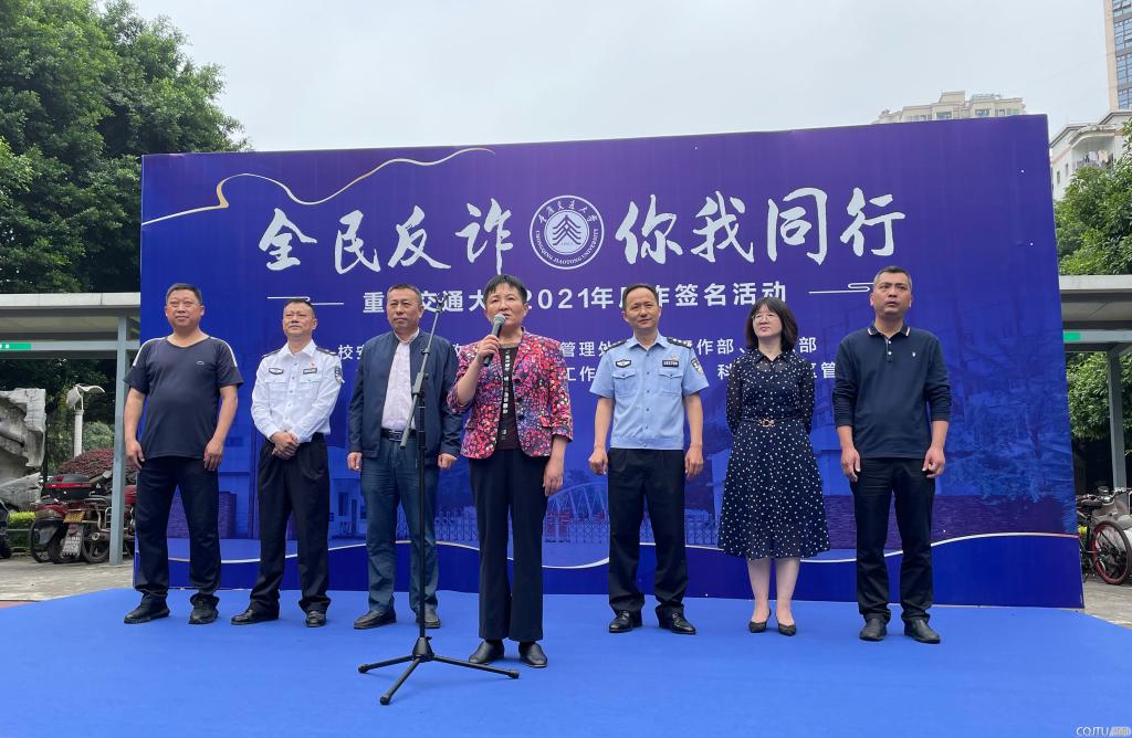 为全面提高广大师生员工反诈防诈的意识和能力,进一步加大校园防电信诈骗宣传力度,科学防灾减灾、增强师生防范意识,营造平安和谐的校园环境,5月12日上午,学校联合南岸区公安分局四公里派出所、驻校七公里派出所、南岸区消防应急救援支队等单位, 在我校南岸校区雅园小区开展了启动仪式、反电信诈骗签名暨“5.12”防灾减灾主题宣传活动。宣传活动由安全管理处处长李志主持。